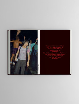 The photography documents parties, raves, and after-hours through close up and emotional portraits in the first half of the 90s. The images were taken in Berlin, Frankfurt, Dortmund, New York, Zurich, Paris and Riccione, at clubs such as Omen, Tresor, E-Werk, Limelight, Tunnel and Sound Factory as well as raves including Mayday and the Berlin Love Parade.